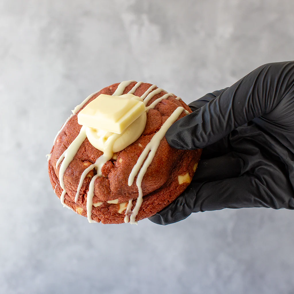 Indulge in the luxurious taste of our Red Velvet Deluxe Cookie – a rich, buttery delight with the perfect balance of cocoa, vanilla, and velvety smoothness. With its signature deep red hue and a soft, chewy centre, this handcrafted cookie is the ultimate treat for red velvet lovers.